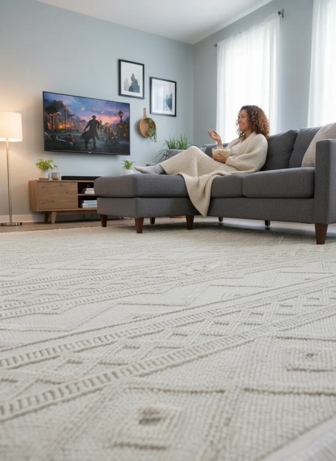 Desen: Elmas dokulu yüzey + simetrik örgü yapısıyla modern ve zamansız bir görünüm.