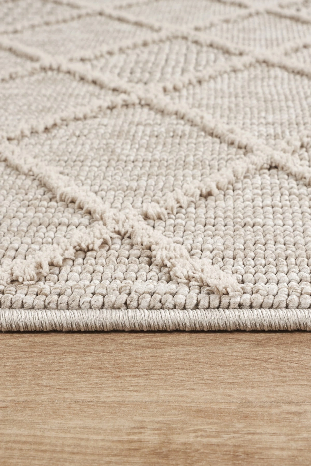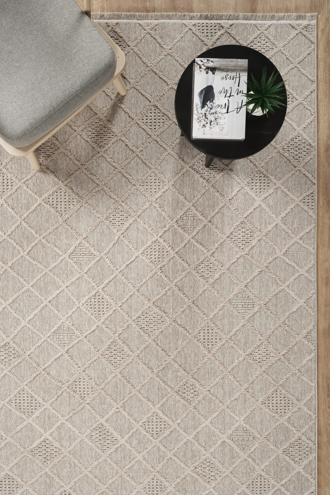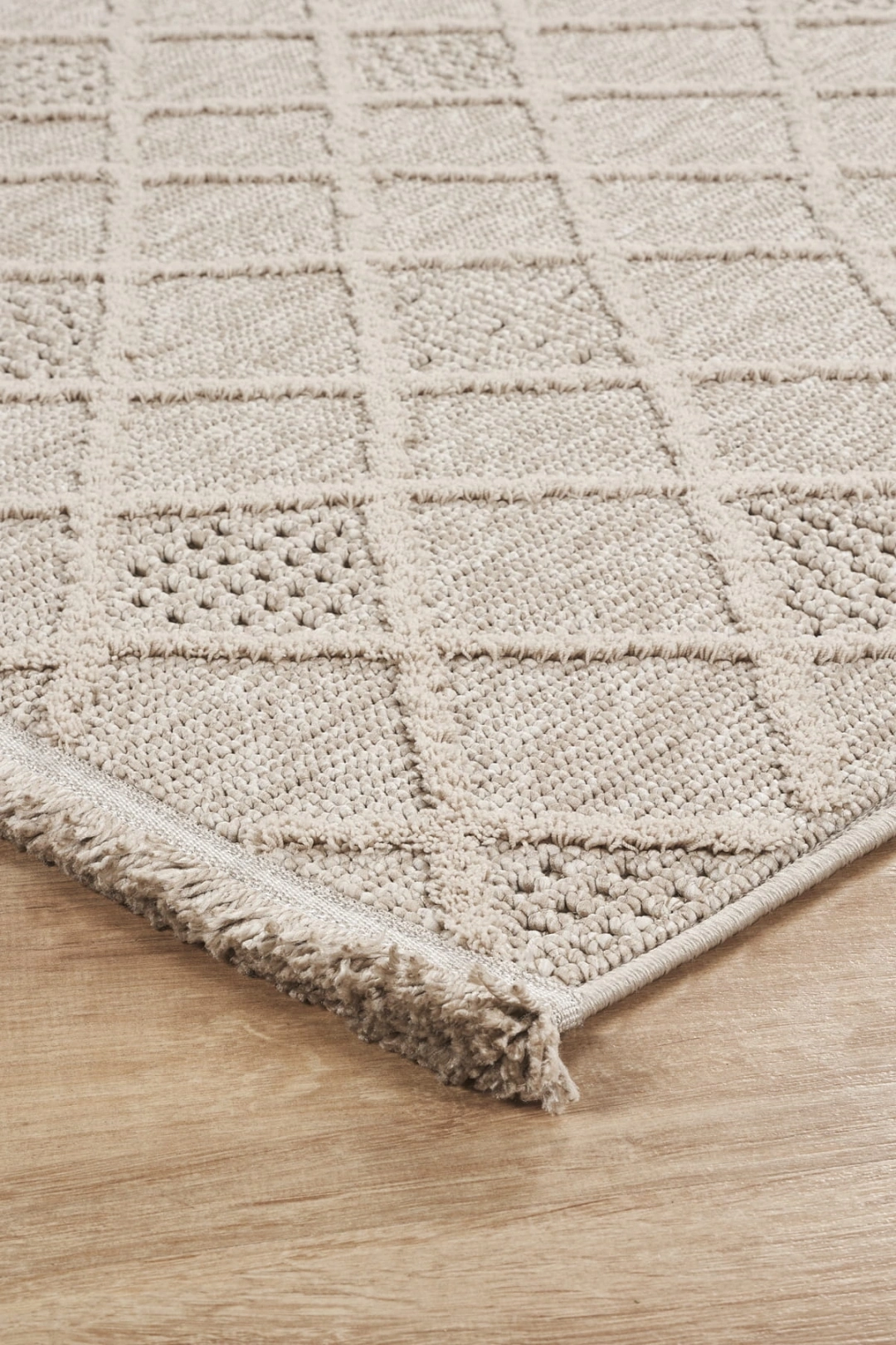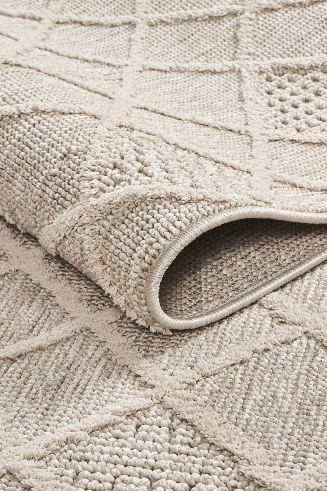 Desen: Elmas dokulu yüzey + simetrik örgü yapısıyla modern ve zamansız bir görünüm.