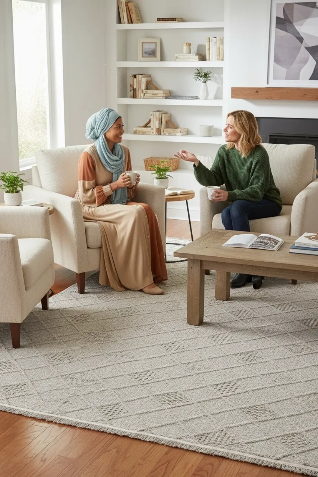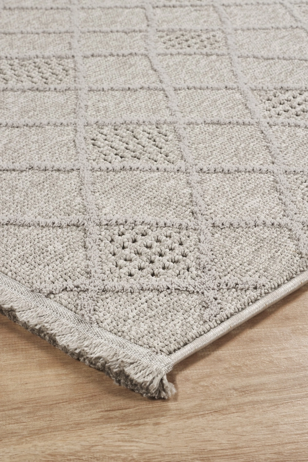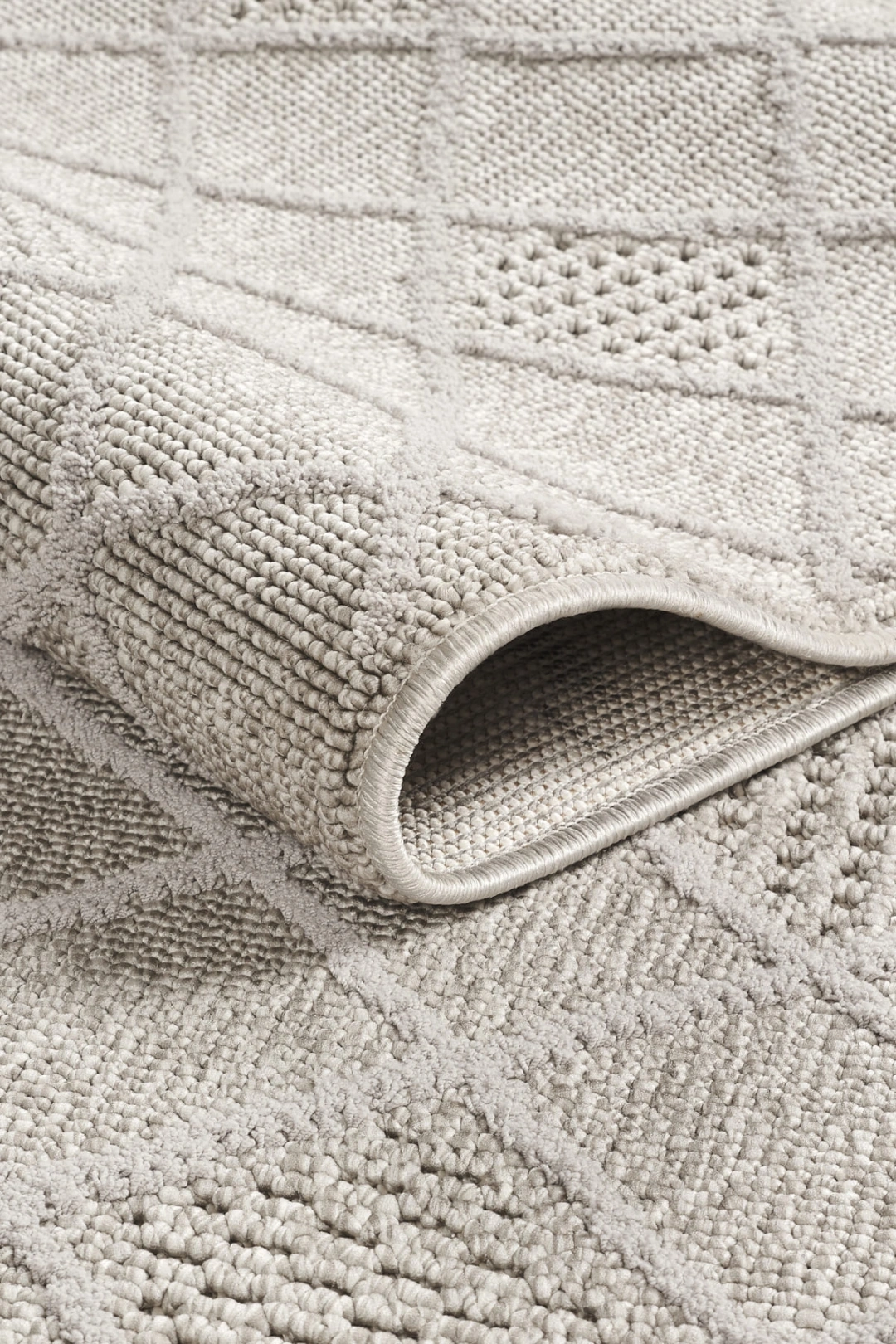Desen: Elmas dokulu yüzey + simetrik örgü yapısıyla modern ve zamansız bir görünüm.
