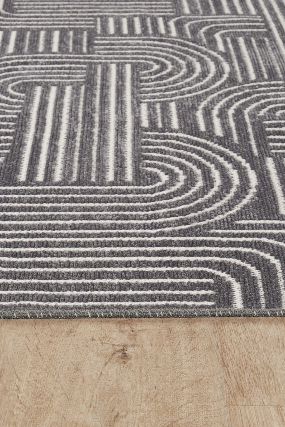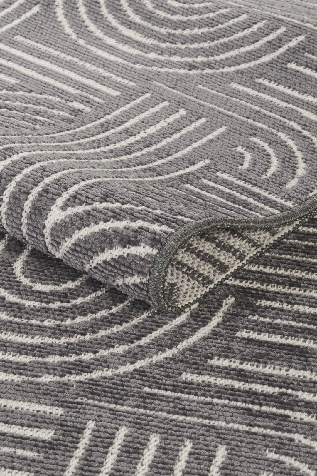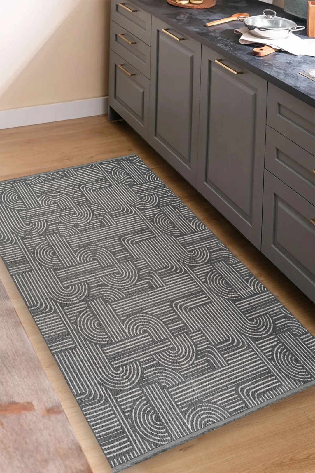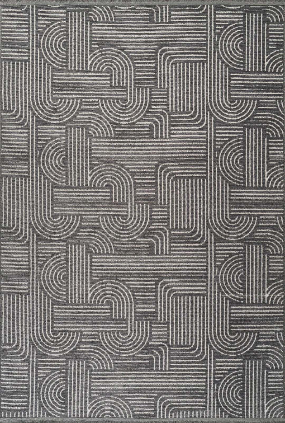 Antrasit tonlarındaki geometrik desenler, hem modern hem bohem dekorasyonlara uyum sağlar. Halının ters yüzeydeki dokuma görünüm, kaliteyi ve el işçiliğini yansıtır.