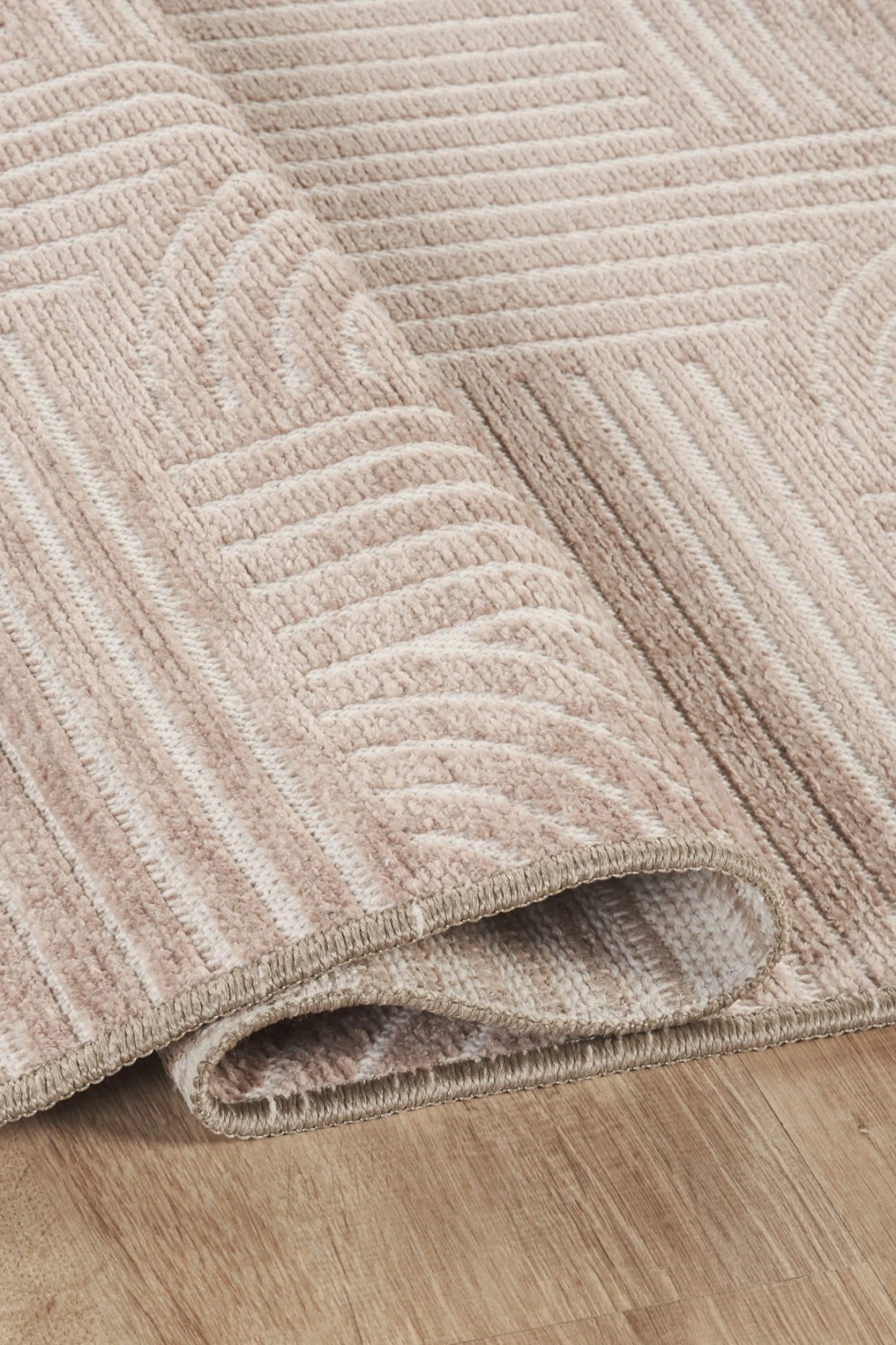 Vizon tonlarındaki geometrik desenler, hem modern hem bohem dekorasyonlara uyum sağlar. Halının ters yüzeydeki dokuma görünüm, kaliteyi ve el işçiliğini yansıtır.