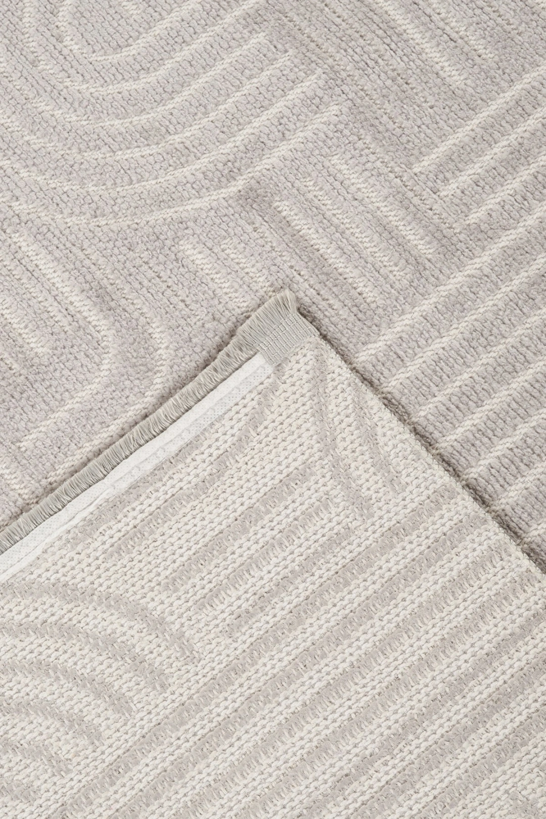 Gri tonlarındaki geometrik desenler, hem modern hem bohem dekorasyonlara uyum sağlar. Halının ters yüzeydeki dokuma görünüm, kaliteyi ve el işçiliğini yansıtır.